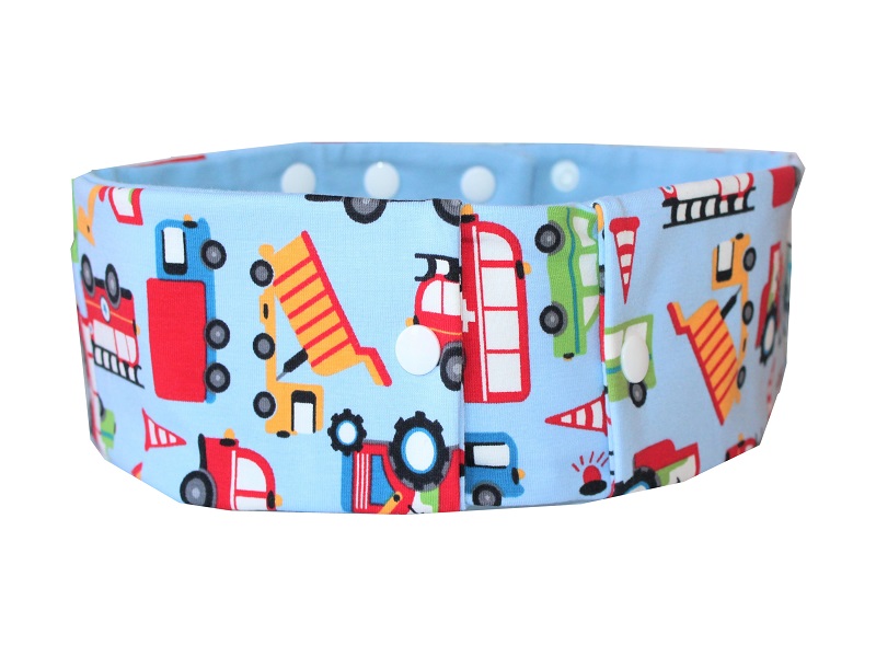 Farbe: bunte Baufahrzeuge, Rückseite uni hellblau