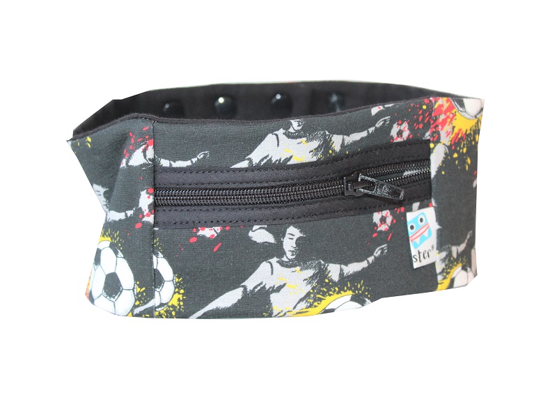 Dieses praktische Sportband schützt die Pumpe vor dem Herausfallen. Es ist aus weichem Jersey genäht und wird hinten mit Druckknöpfen (3-fach verstellbar) verschlossen.