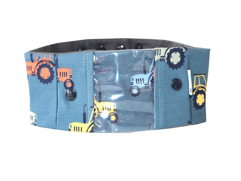 Das Band ist sehr angenehm zu tragen, tags wie nachts, Sommer wie Winter immer ein schönes Accessoire. Der Clou, ist das eingenähte Sichtfenster, beidseitig kann die Pumpe eingesteckt werden und steht so nicht auf dem Kopf. Auch bei einem kurzen Katheter ein großer Vorteil. Die Pumpe muss zur Bedienung nicht entnommen werden, durch die Folie hindurch ist die Pumpe bedienbar. Da es sich um eine waschbare Folie handelt, kann das Sportband bei 30° gewaschen werden, bitte nicht in den Trockner geben und nicht Schleudern. Die Rückseite des Bandes ist uni grau.