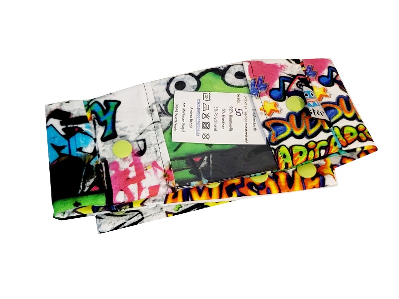Bei diesem Sportband handelt es sich um ein Einzelstück für einen Bauchumfang von 50cm. Das Design der Vorderseite kann vom Bild abweichen.
