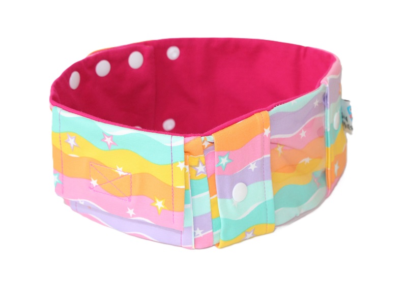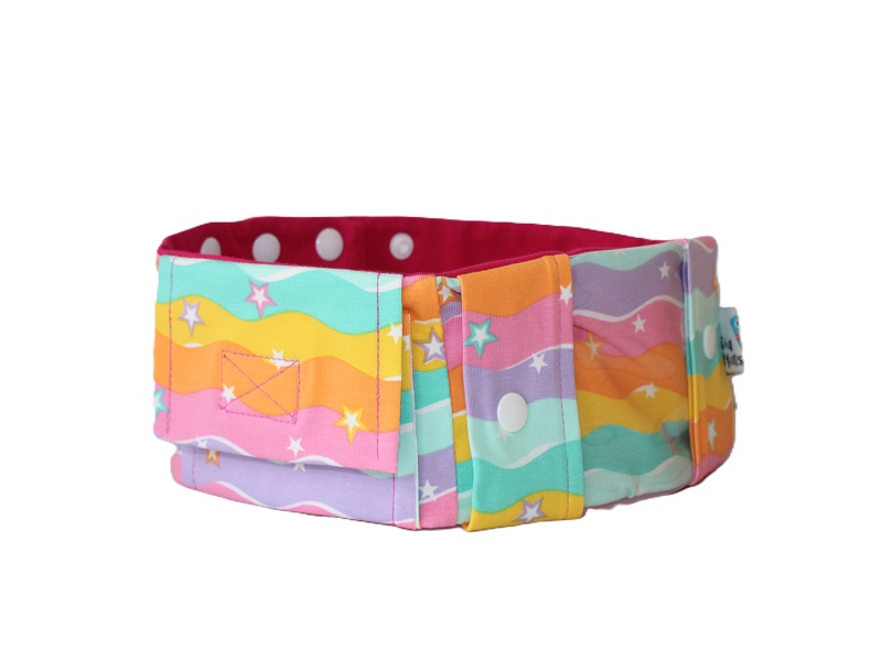 Dieses praktische Sportband schützt die Pumpe vor dem Herausfallen. Es ist aus weichem Jersey genäht und wird hinten mit Druckknöpfen (3-fach verstellbar) verschlossen.